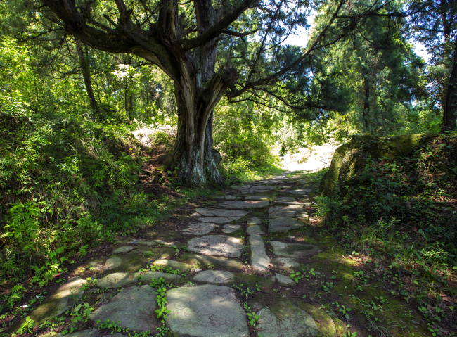 遮天柏生长于龙源十里长廊,距龙源镇地里许道旁,树高32米,胸径2米,脚围12米,主杆上部伸出8个大叉,形成遮天蔽日的大伞,故人称"八伞遮天",树冠覆盖地面约2000平方米。